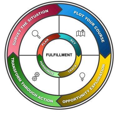 Each phase moves through Plan, Act, Track, and Harmonize, so growth becomes a habit, not a guess.